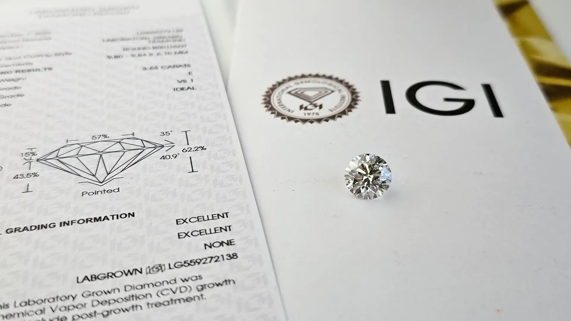 The Center Diamond is Certified by IGI - International Gemological Institute