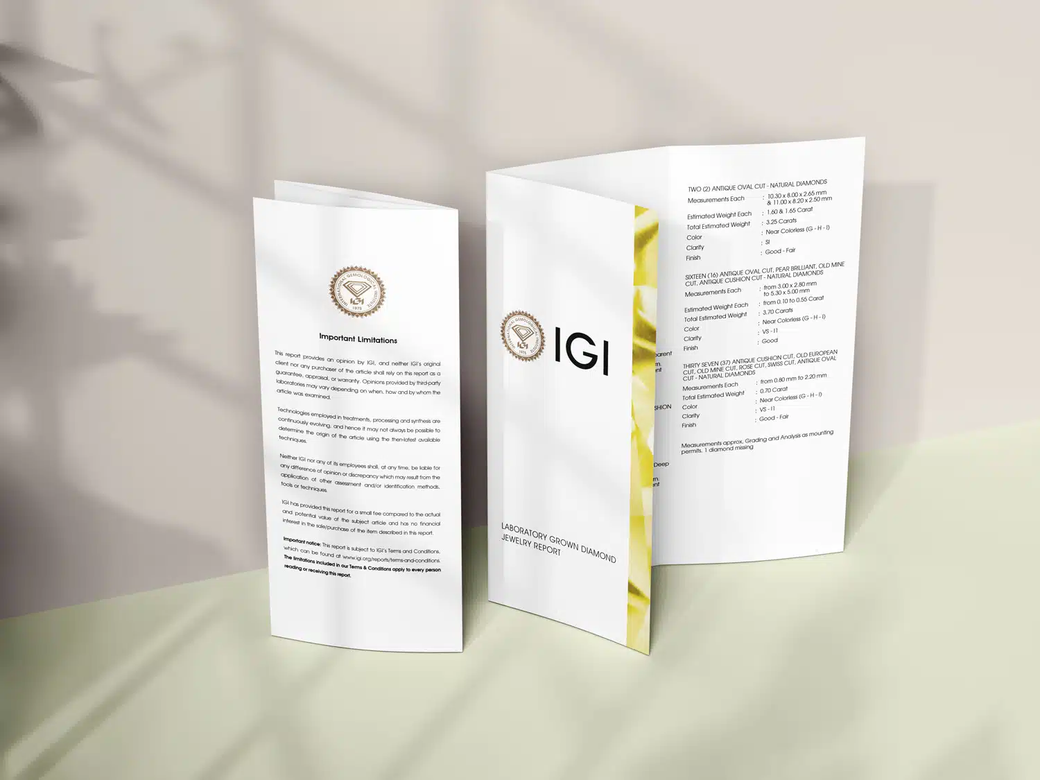 Diamonds over 1 carat will come with an IGI Certificate!